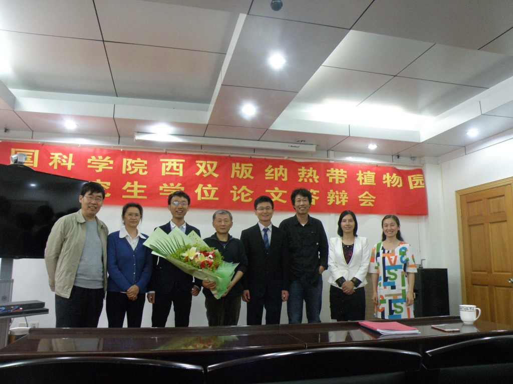 On May 23th, 2016, five experts from Kunming University of Science and Technology and Southwest Forestry University attended the presentations and defenses of Mr. Changhui Zhu, a master student and Mr. Fan Zhang , a doctoral student in biomass group that were expected to be graduated in 2016 supervized by Prof. Zhen Fang. After the discussion and secret ballot, the five dissertation committee members all agreed the theses and defense of Changhui Zhu and Fan Zhang, and suggested that the academic degree evaluation committee of Xishuangbanna Tropical Botanical Garden, CAS, award Mr. Zhu the master’s degree and Mr. Zhang the doctor’s degree in science, according to relevant regulations. On the occasion of graduation, congratulations to Changhui Zhu and Fan Zhang!