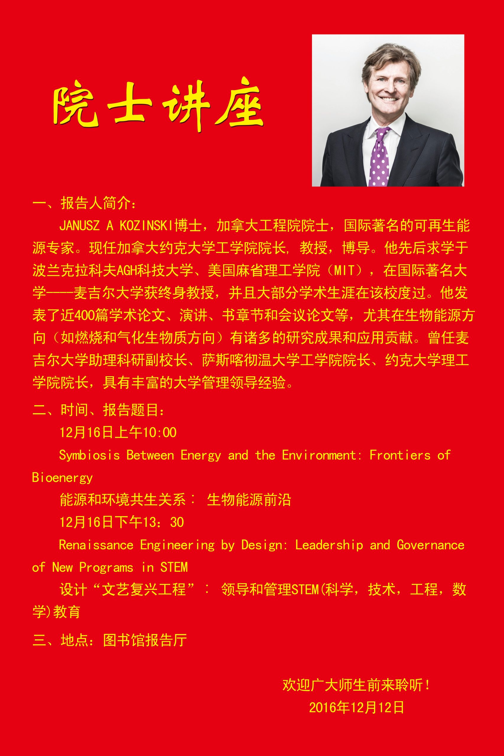 12月17日至20日,加拿大约克大学(York University)工学院院长Janusz Kozinski院士应方真教授邀请来我校访问,与我校工学院方真教授进行学术交流和科研合作。