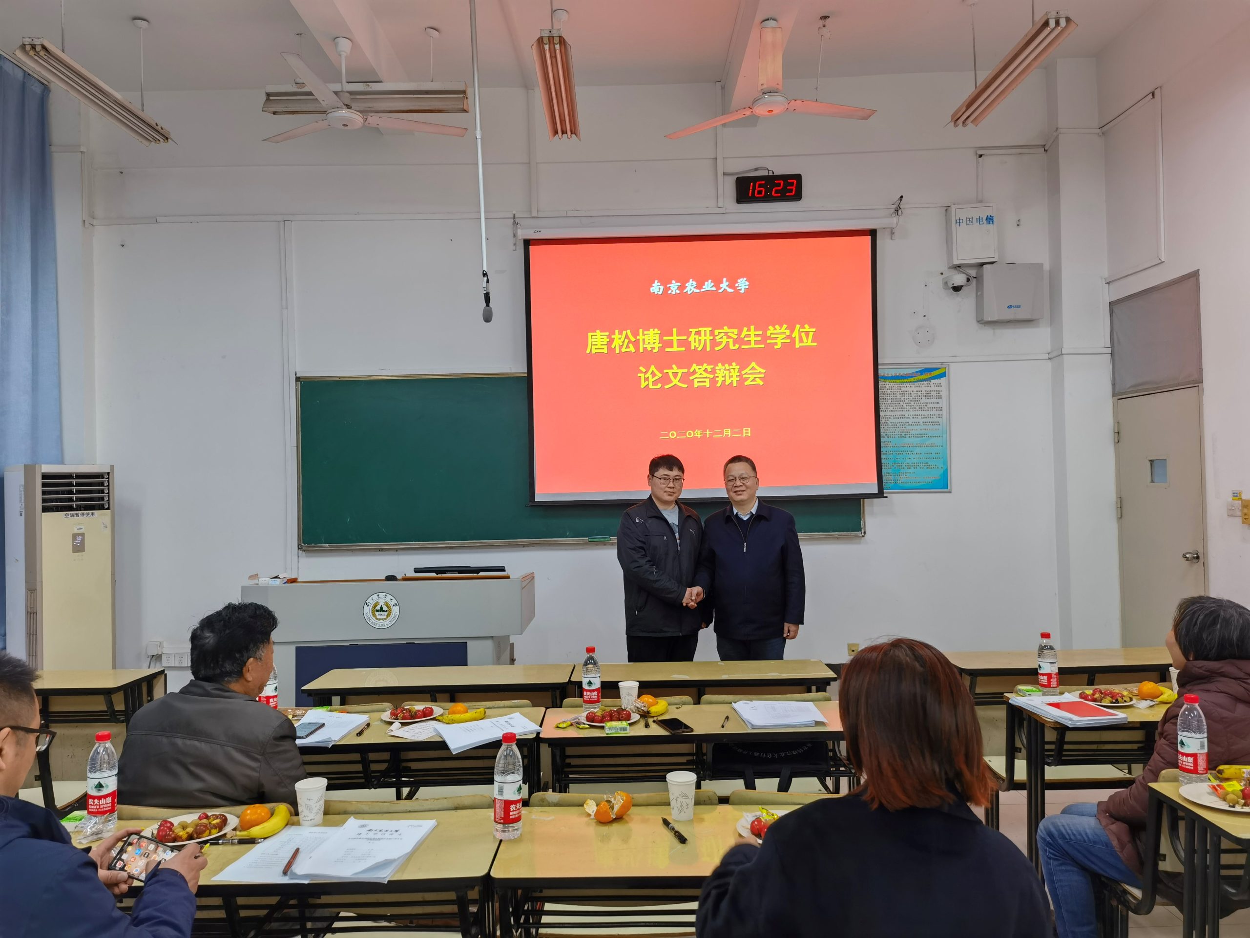 Started from 2:30 pm December 2, 2020, Mr. Song Tang supervised by Prof. Zhen Fang successfully defended his dissertation at A105 Huixian Building, Pukou Campus of Nanjing Agricultural University. The defending committee was composed of Prof. Qiang Yong (Chair) from Nanjing Forestry University, Prof. Xiao-mei Ye from Jiangsu Provincial Academy of Agricultural Sciences, Prof. Jun Zhou from Nanjing Tech University, Profs. Chang-ying Ji, Chun-xia He and Kun-quan Li from Nanjing Agricultural University.